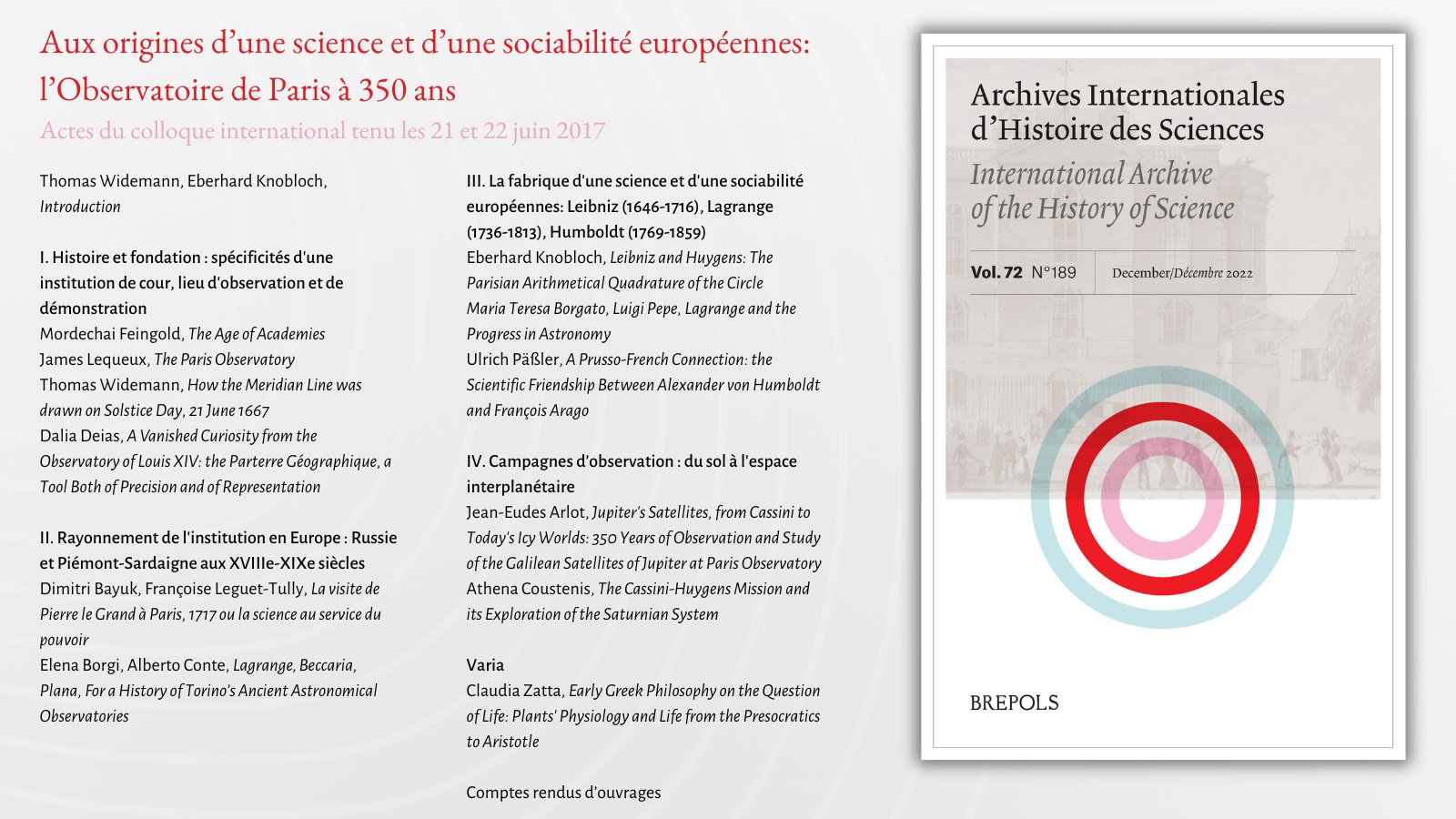 Archives Internationales d'Histoire des Sciences 72/2-189, 2022
