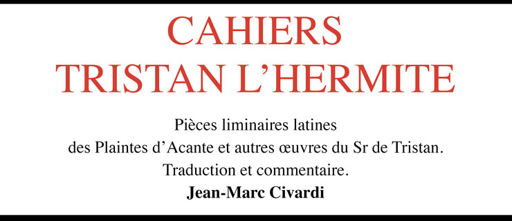 | Pièces liminaires latines des Plaintes d’Acante et autres œuvres du Sr de Tristan 12 novembre 2025 - 12 novembre 2027 | |